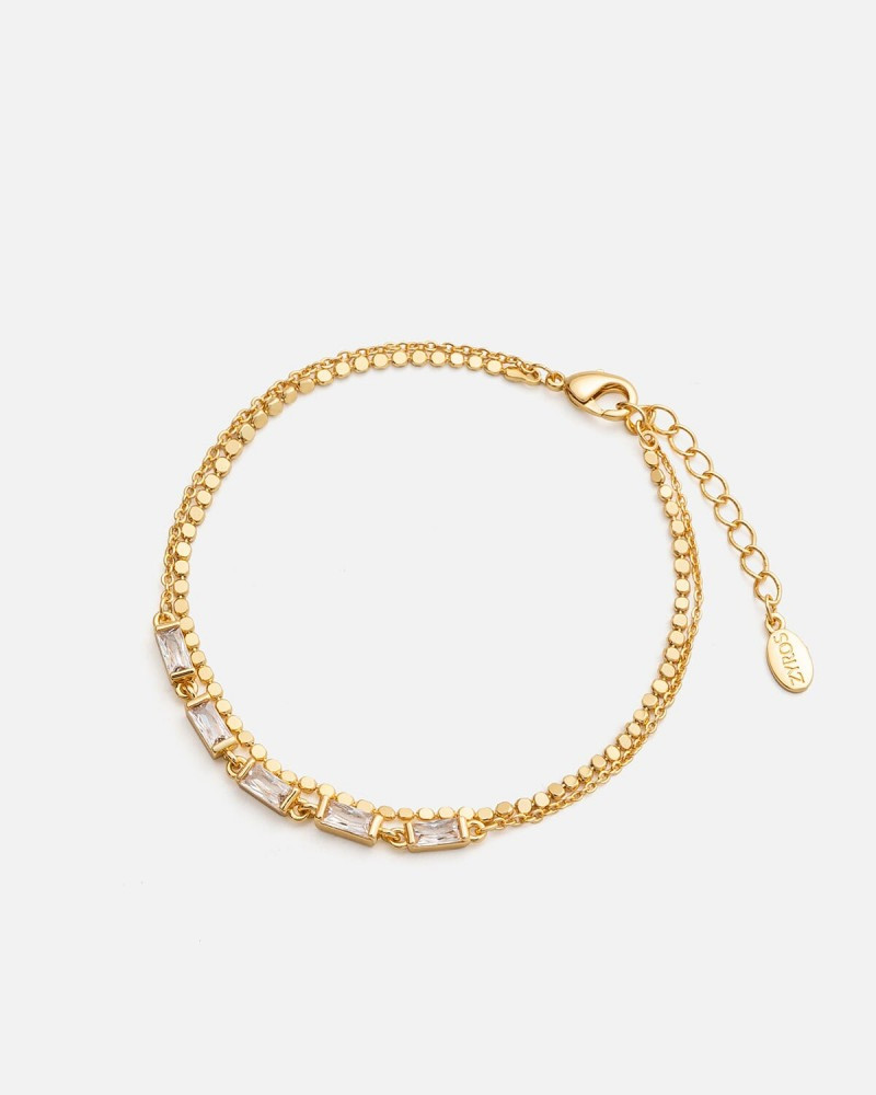 سوار أنيق بتصميم مميز باللون الذهبي ، هذه الأسوارة الإضافة الرائعة لإطلالتك النهارية والمسائية ، سوار يتميز بتصميم يناسب لكل الأوقات يتزين بأحجار زركون مستطيلة بارزه ، يمكنك تنسيق السوار مع إحدى ساعاتك الأنيقة لتحضي بطلة مميزه .