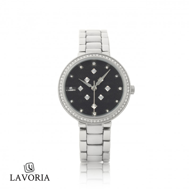 الساعة والأساور مصنوعة من الاستيل وبفصوص زركون